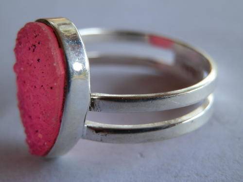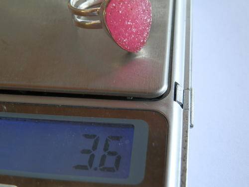 Very nice sterling silver ruby druzy ring, marked 925, size P / 8 with a head width of 16 mm and a weight of 3.6 g.