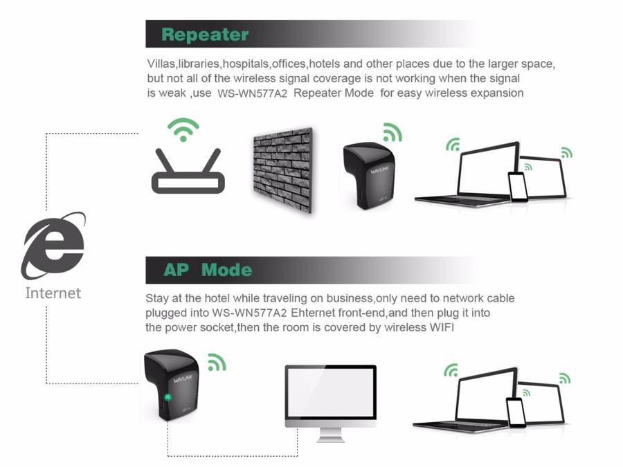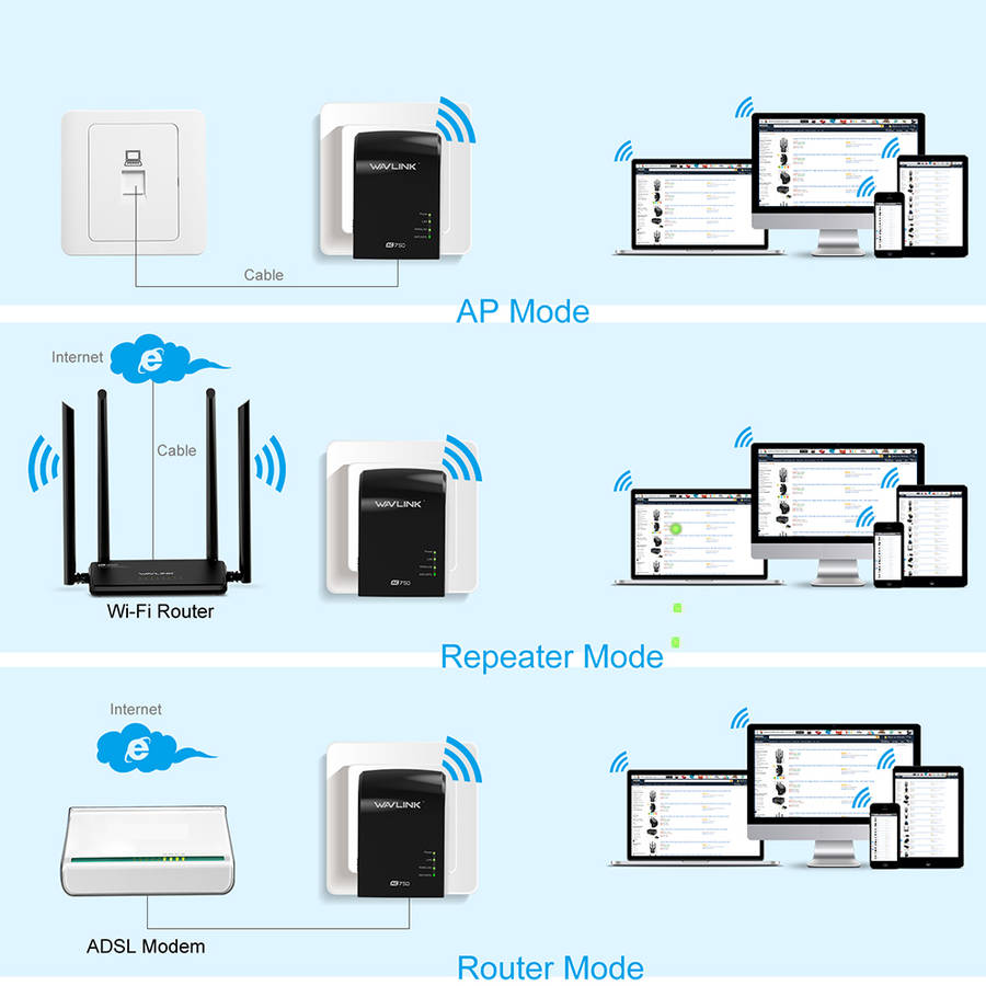 New Wavlink 750Mbps Dual Band 3 in One Wifi Repeater Router Built-in Antenna UK/
