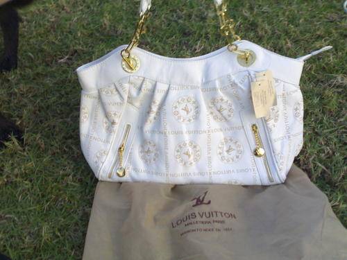 The Pictures say it all, really gorgeous has ample space with 2 different size zips on the front outside and 2 cell pockets inside with a zip pocket to, it has gold studs at the bottom of bag and has chain with leather handles straps.Stunning quality mateial is a soft suedish leather size is 46cm along and 25cm down and 12cm wide. Please ask questions and only serious bidders!