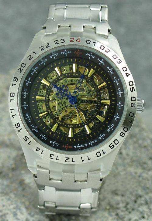 New Winner Black & Gold Skeleton Mechanical Mens Watch.
