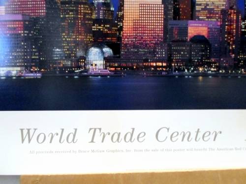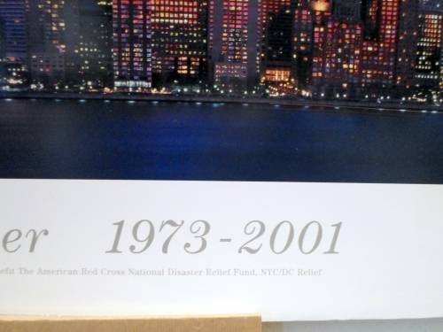 A beautiful New York World Trade Center poster that was sold to support the Red Cross National Disaster Relief Fund. It measures 92cm x 61cm and is unframed. Offered at a low price,
