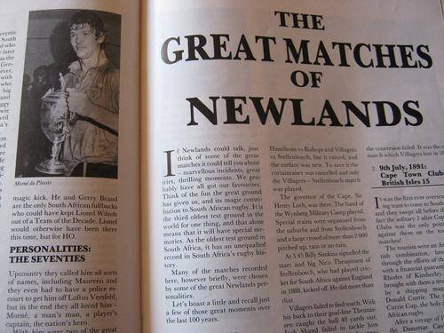 A4 magazine style publication; 38 pages. Newlands 100. One Hundred Years of Rugby at Newlands. 1890-1990. The cover is heavily worn (see image). The first and last pages are also not good. Good inside. Two red pen marks as in image. Shipping within SA is R20.