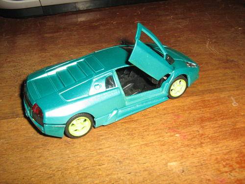 Have a look at this Lomborgini in metallic green with neon green rims. Condition good SORRY NO BOX. Scale 1/32 or lenght 15cm. Please see pictures for best discription, what you see is what you get.