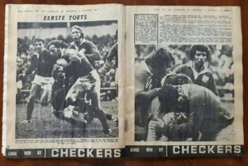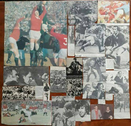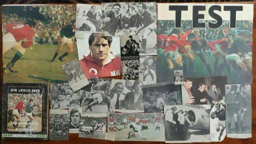 Newspaper pictures and souvenir magazine of the 1974 British Lions rugby team who toured South Africa.. See pictures and description of the items below below. No international transactions.