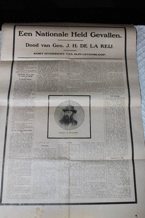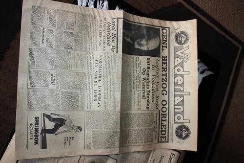 1942 Death of Genl. Hertzog: 4 page newspaper supplement of "Die Vaderland" - 58cm in length. VERY good condition, rare item! 1914 Death of Genl. De la Rey: 1 folio newspaper supplement of "Het Westen" - 55cm in length. VERY good condition as well, rare find! Packaging and Postage: R30.00.