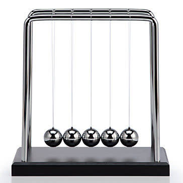 This has to be one of the most interesting desktop accessories created. The Newtons Cradle demonstrates the conservation of momentum and energy using a series of swinging spheres. Its features include 5 silver balls and a black wooden base.
