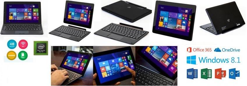 Nextbook 10.1 Windows 8.1 Tablet PC with Pogo Keyboard-Intel ATOM¿ Quad-Core 1.8Ghz Burst Speed Processor, 1GB DDR3 Memory, 16GB on-board eMMC storage, 10.1 inch High-resolution 1280 x 800 IPS Touch Screen, WIFI 802.11 b/g/n, Bluetooth4.0, Front Camera 0.3 MP ; Back camera 2.0 MP, Micro HDMI, Micro USB port , Micro SD Slot, 3.5mm jack, Microphone ,Integrated Speaker, 6000 mAh Lithium battery, 3 -axis G-sensor-Weight 675g, Microsoft Windows 8.1 Operating system and Office 365 Personal 1-yr subscription included-Black, Retail Box , 1 year warranty