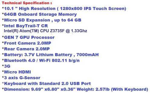 TABLET, KEYBOARD, CHARGER and MANUAL
