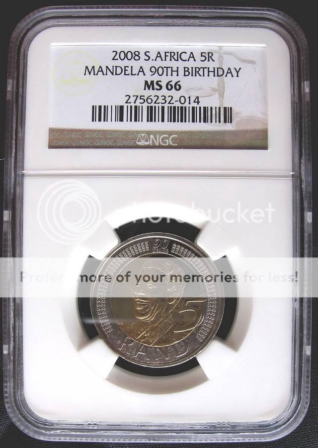 SLABBED GRADED NGC MS 66 2008 Mandela 90th Birthday COIN - - Unique trusted investment coin - these just keep going up and up !