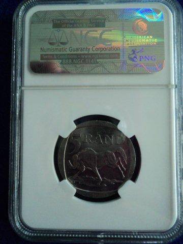 NGC AU55 - 2000 Nelson Mandela R5 + 2 Stamps. CTO.
