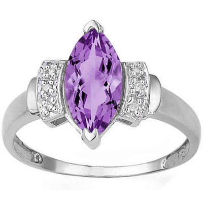 NICE 1.52 CT AMETHYST & 2 PCS OF WHITE DIAMOND 0.925 STERLING SILVER W/ PLATINUM RING