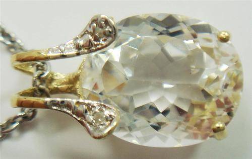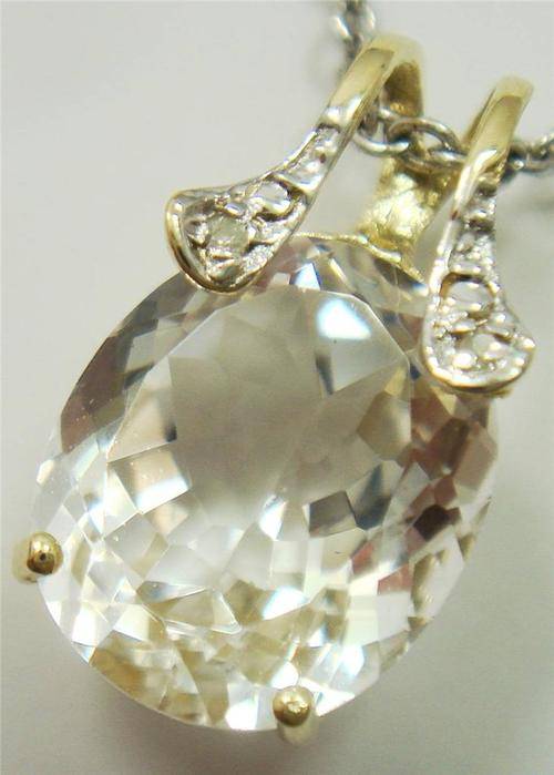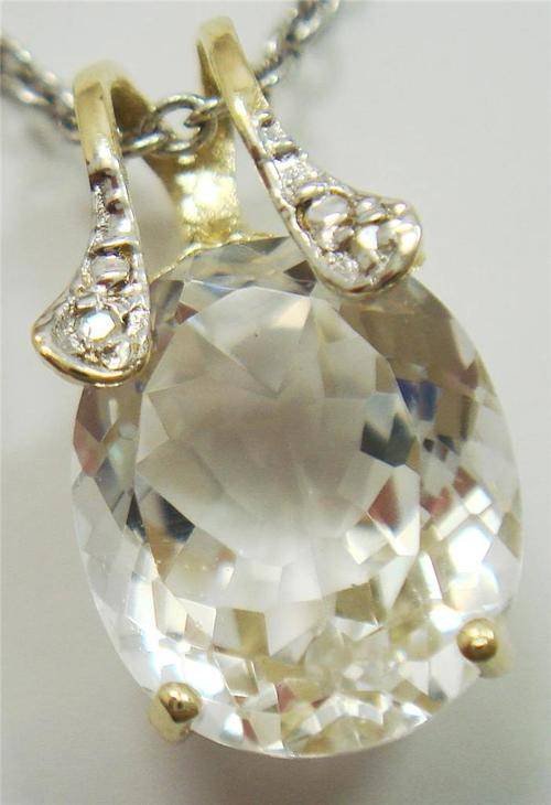 NICE 10KT SOLID YELLOW GOLD OVAL WHITE TOPAZ DIAMOND PENDANT. GREAT!!!