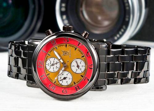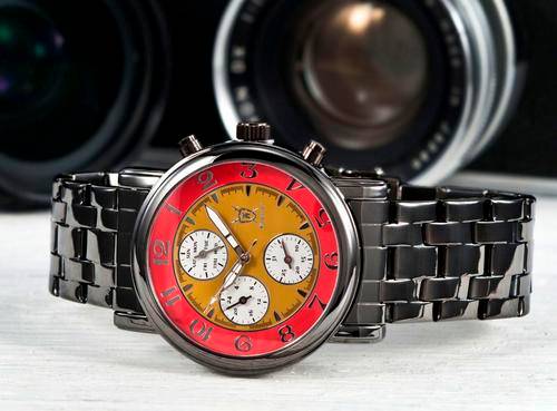 A Konigswerk Vollturnus steel band Gun metal ,mustard / red