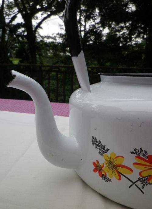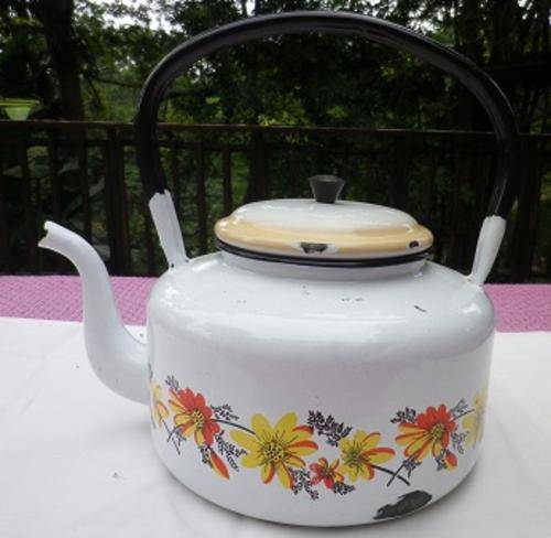 Nice flowers-on-white large vintage enamel kettle