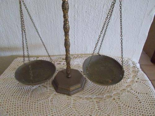 Kindly note postage will be R60 nice metal brass looking scale of justice item in good used condition some wear noted on the bowls as they are just plated