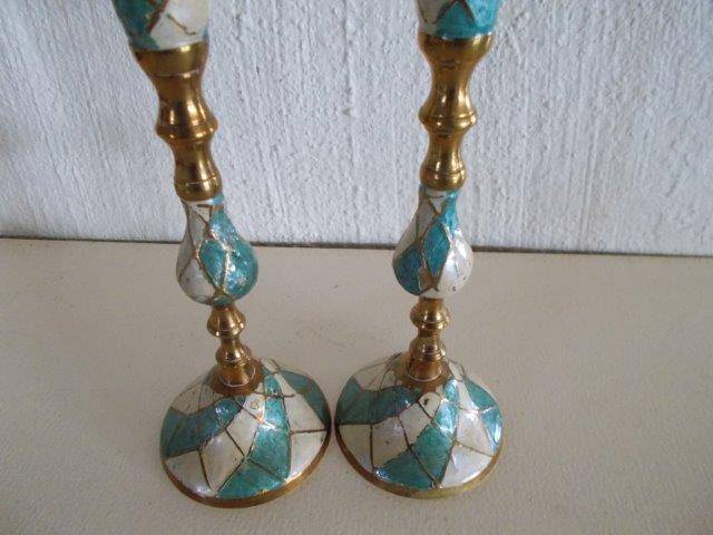 nice pair of brass painted candle sticks items are in good used condition nice find for the collector