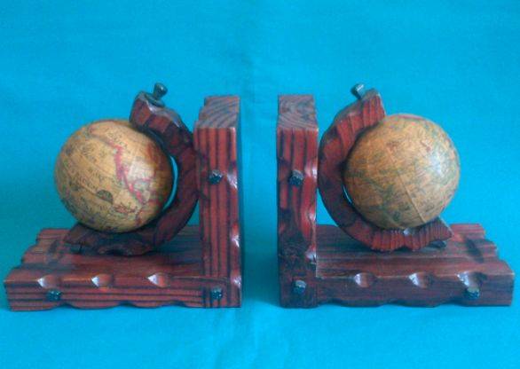 NICE PAIR OF WOODEN GLOBE BOOK-ENDS.