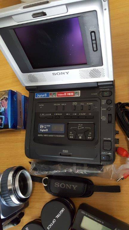 Nice Sony digital handycam Has been tested and works fine. Two Batteries Sony Battery Charger w/ wall plug, DV Input/Output cord, and Sony Video 8 Cassette no power cord for it memory stick
