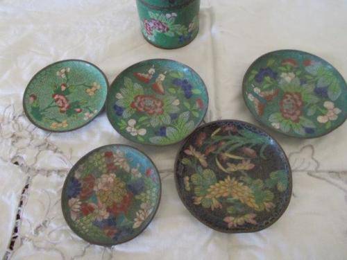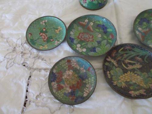 Vintage cloisonne trinket dish and some cloisonne pin trays items there is some minor damage to the backs other wise items are in good used condition as per pictures for one bidplease have a look at my other listings *free sprit*Thank you