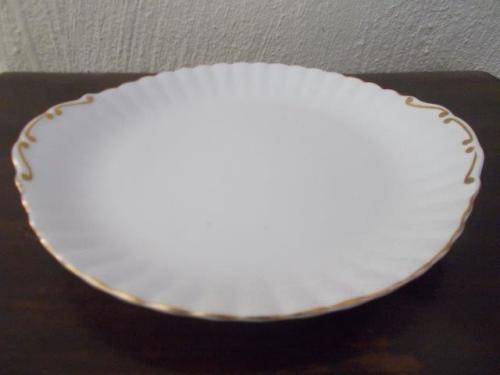Nice plain white and gold Royal albert val d'or cake plate please note there is a very small spot of wear noted on the rim of the cake plate item in good used condition please have a look at my other listings*free sprit*Thank you
