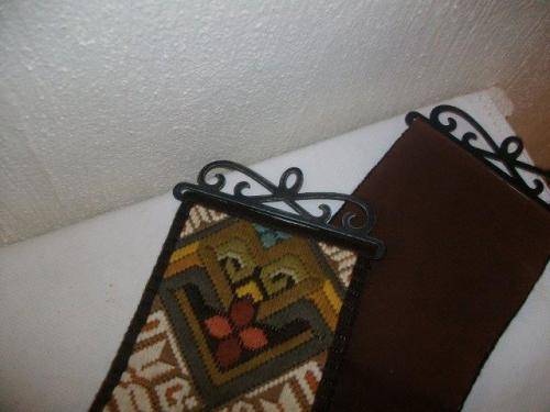 Lovely long wool? vintage wall taperstry with metal handles item in good used condition