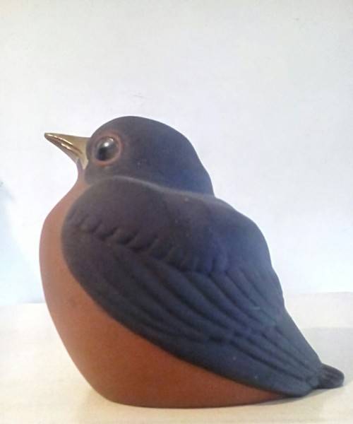 Nicodemus, American pottery, red Robin. The Waynesboro, America, based pottery was started in 1941by Chester Nicodemus and is famous for using local red clay. This chirpy Robin measures 100mm across the base and stands 125mm high. Small chip to edge of beak. Otherwise good condition.