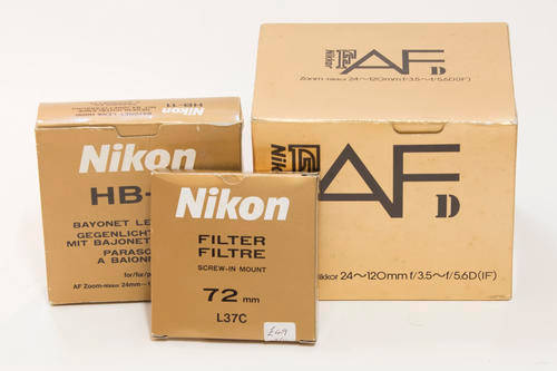 Nikon 24-120 F3.5-5.6D (IF) with Nikon hood and Nikon filter. All in excellent condition. Please check compatibility before bidding, i'm not sure this will focus on the entry level bodies.