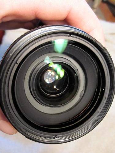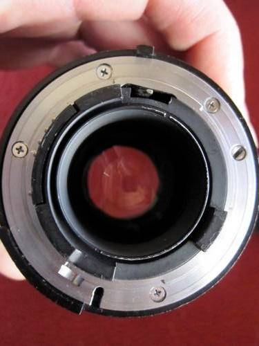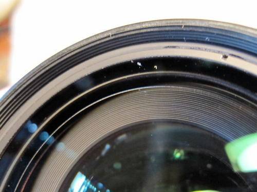The lens is used with many scuffs on the barrel,and a hairline crack on the aperture ring