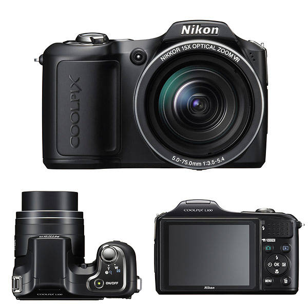 10 megapixel camera with powerful zoom lens. Whether you’d like to shoot impressive group portraits, stunning landscapes or detailed close-ups, the versatile NIKKOR 15x zoom lens with wide-angle capability can capture it all. Scene Auto Selector will automatically optimize all camera settings according to the subject you are shooting, and advanced anti-blur technologies work to counter the risk of blurred images. A range of automatic portrait functions mean you’ll never miss a smile and the camera will warn you if someone had their eyes closed so you can quickly take another shot. The COOLPIX L100 – affordable, versatile and powerful. This camera is available in black.