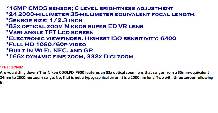 NIKON COOLPIX P900 Digital Bridge Camera (16.0 MP CMOS sensor, 83x Zoom) 3-Inch LCD Screen NIKON COOLPIX P900 Digital Bridge Camera (16.0 MP CMOS sensor, 83x Zoom) 3-Inch LCD Screen NIKON COOLPIX P900 Digital Bridge Camera (16.0 MP CMOS sensor, 83x Zoom) 3-Inch LCD Screen NIKON COOLPIX P900 Digital Bridge Camera (16.0 MP CMOS sensor, 83x Zoom) 3-Inch LCD Screen
