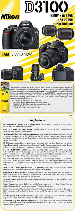 NIKON D3100 Body + 18-55VR+ 55-200VR + free Training [App. SA NIKON Dealer]