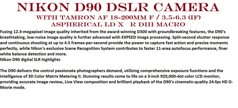 Nikon D90 with Tamron AF 18-200mm f / 3.5-6.3 (IF) Aspherical LD XR DiII Macro, 5550 Shutter Count