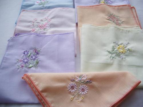 NINE PRETTY EMBROIDERED HANDKERCHIEFS - AS NEW!