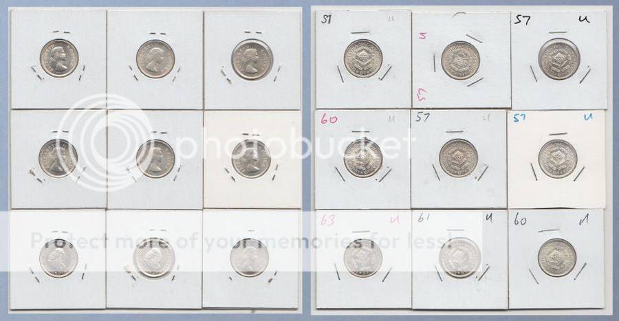 According to the carton holders, all the coins are in uncirculated condition, but I cannot guarantee the grades. The dates are 5 x 1957, 2 x 1960, 1961 and 1963.