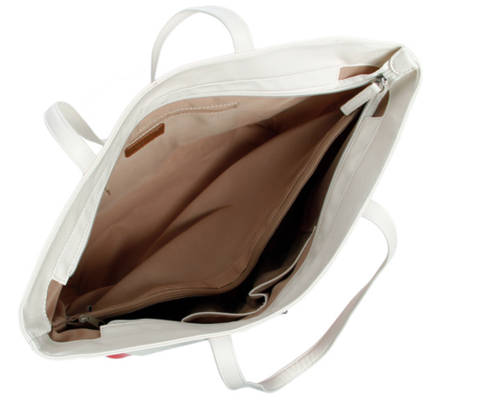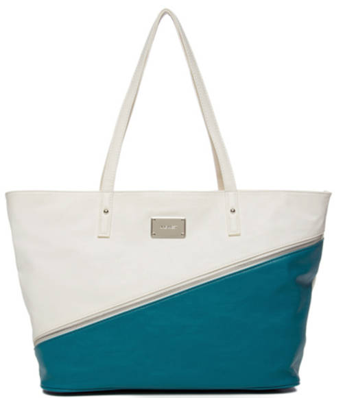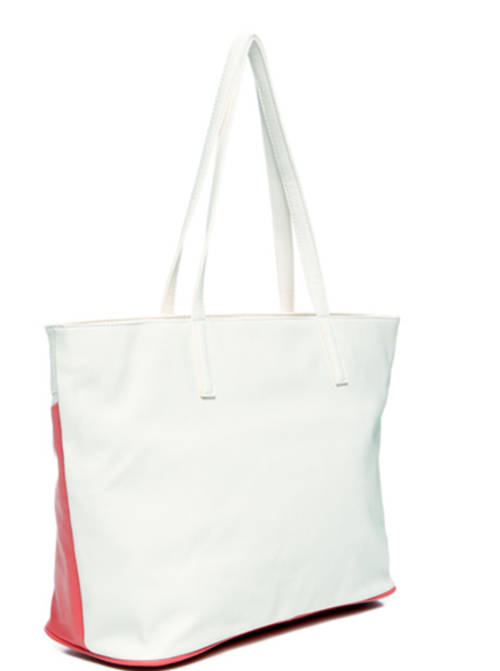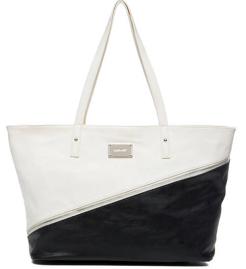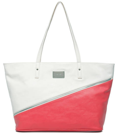 Bright and fashionable, this stylish tote from Nine West features a bold grain PVC construction with an accentuated by a two-tone colour scheme. The front presents with a diagonal zipper detail with a solid white reverse side.
