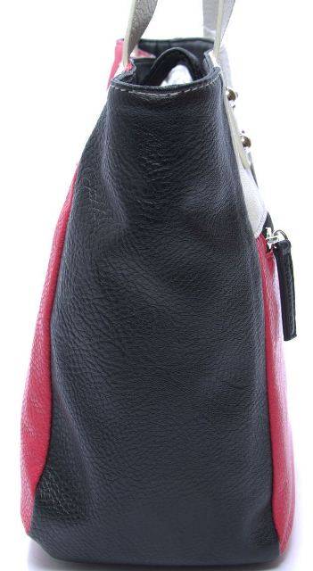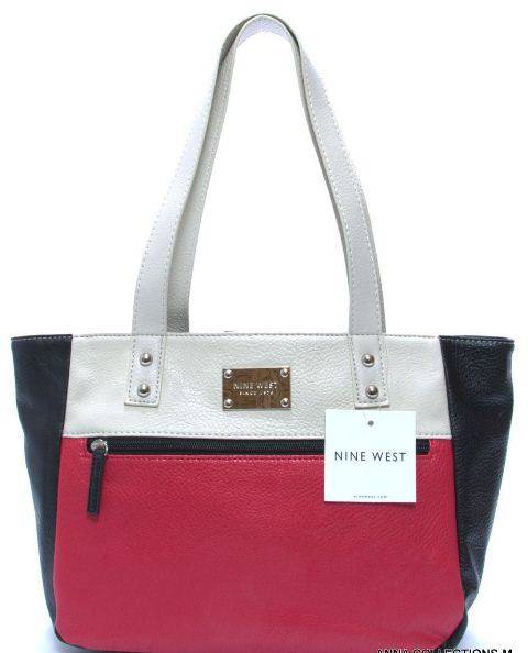 Add a splash of colour to your ensemble when you carry the Nine West Tristate Slightly Pebble Satchel. A zip pocket at the front of this discount Nine West satchel offers a place to store your phone. Open the magnetic snap closure to find a spacious interior divided into two by a zippered section. A zip pocket offers even more storage. Silver-tone studs and the classic Nine West nameplate add extra detail to this Nine West satchel.