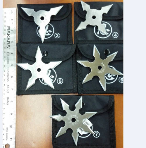 please notice this price is per throwing star. size are 3.4.5.6 and 7 . leave us a message what size you want .