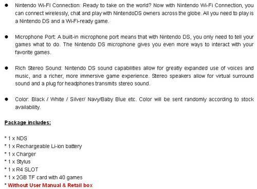 Nintendo DS NDS Game Console Dual Screens Touch Screen + R4 Slot + 2GB TF Card with 40 Games