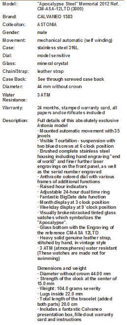 Exclusive models from Calvaneo 1583 are Quartz chronograph or Automatic watches using Swiss or Japanese movements (ISA, Ronda, ETA, Miyota).