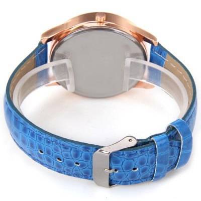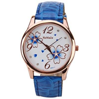 No.99653 Quartz Watch with Leather Band and Flower Patterns - BLUE