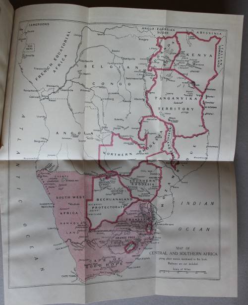 288 pages, 2 fold-out maps at the rear of the book, 4 illustrations, blue cloth titled gilt on the spine, uncut fore-edge. Dust jacket in poor condition. Foreword by J.C. Smuts. R65 paxi or R100 courier / postnet in SA. Slight water damp residue on top section of some pages.