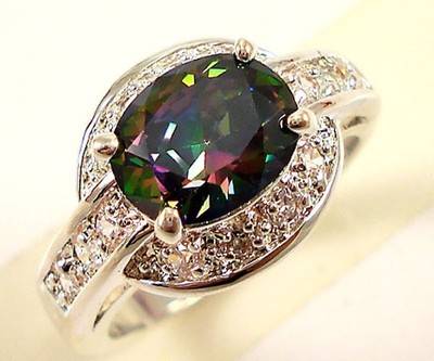 Noble Natural Mystic topaz & white topaz sterling silver Ring Size 8