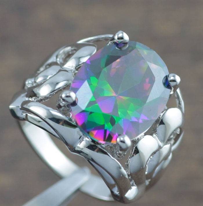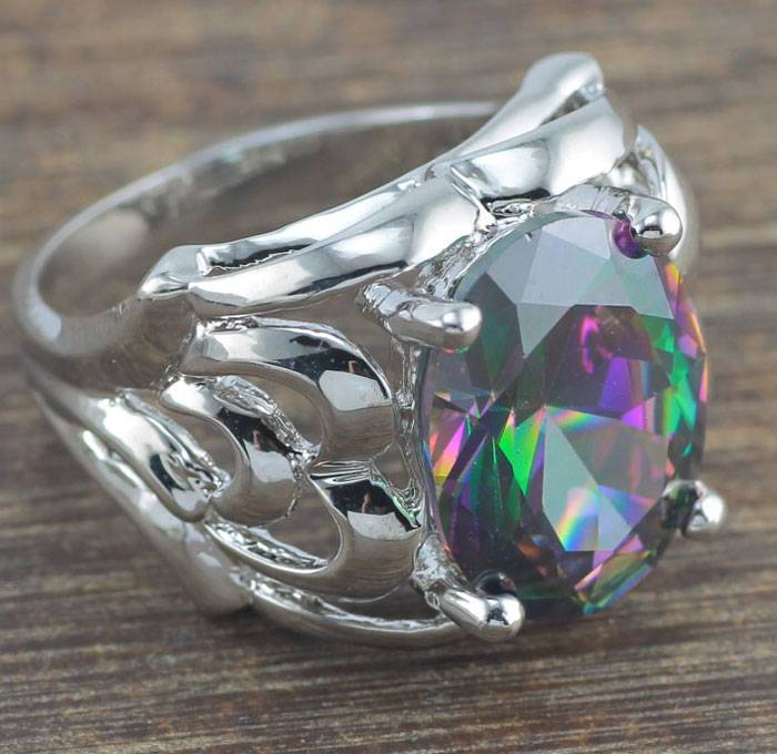 Noble Rainbow Topaz Women Jewelry Gemstone Silver Ring Size 8.5