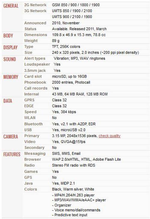 With the built-in music player and FM radio, you can easily enjoy your favourite tunes on the go using the standard 3.5 mm audio jack. The 3.2 megapixel camera and 2" QVGA display let you capture and relive images in clarity. Email, SMS, MMS, offer you a variety of ways to get your message across. Data transfer With up to 16 GB of additional memory when using an optional memory card, as well as microUSB, Bluetooth, and 3G connections, you can easily store and transfer your data. The included Facebook dedicated application, and browser applications make it simple to keep in touch with those close to you.