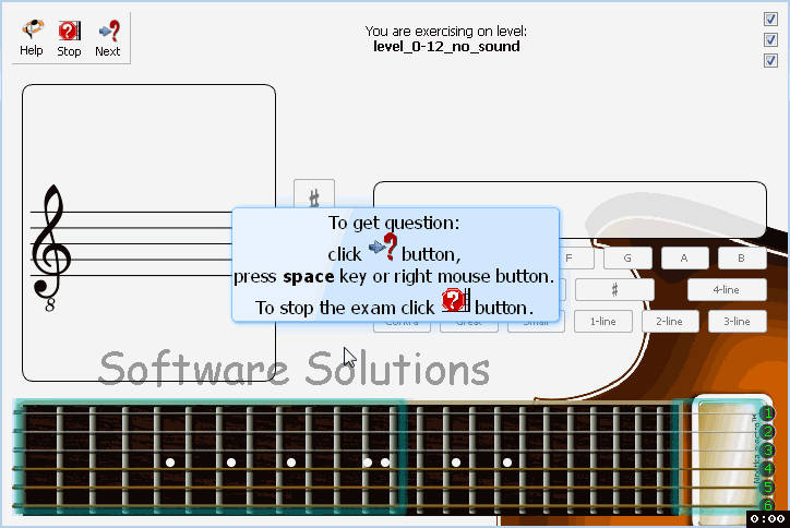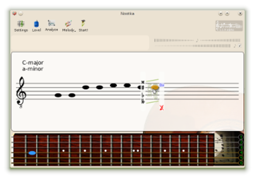 Interactive interface to discover the rules of musical notation, exercises with possibility to create own sets, accurate method for, detecting sung and played sound, natural sound of guitars, clefs (treble, bass and others) and grand staff, analyze of results, different kinds of guitars and theirs tuning