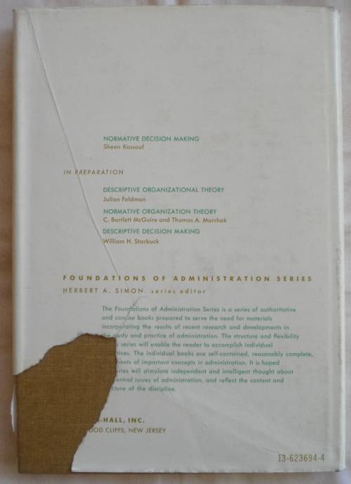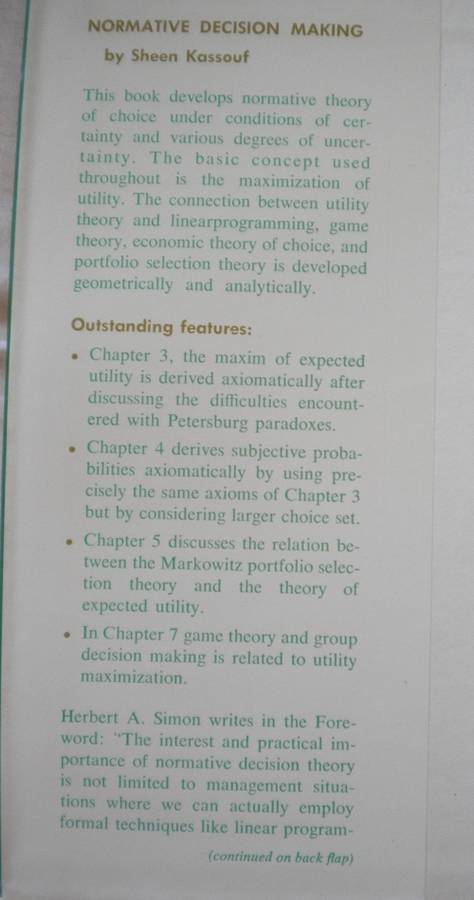Normative decision making by Sheen Kassouf. Dustjacket is damaged (see image) but book itself is in good condition.