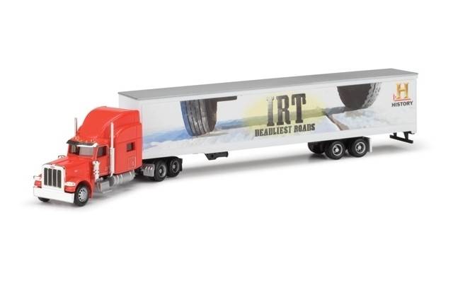 "Ice Road Truckers" rigs from the popular History Channel series. Set includes assortment of Peterbilt 389 Tractor with 4 different murals on Utility Trailer 53’ dry cargo van.