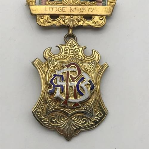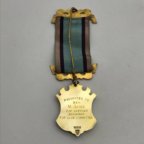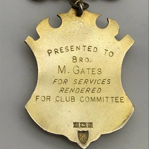 This early and heavy, super quality sterling silver and enamel 'Royal Antediluvian Order of Buffalos' (RAOB) medal is in excellent condition, complete with ribbon. It is engraved 'Presented To Bro. M. GATES' 'For Services Rendered For Club Committee' on the back, as well as English hallmarked for Birmingham 1967, with the makers mark 'F.C.P' for 'F. C. Parry Ltd'. The medal measures 4,3cm x 12,5cm and weighs 40g.