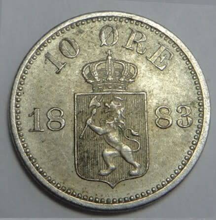 Norway, Silver 10 Ore 1883 (Uncirculated)