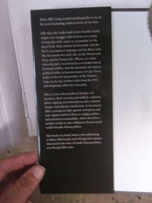 HARDCOVER WITH DUST JACKET;;16 X 24 CM;PUBLISHED IN 2016;599 PAGES WITH B&W AND COLOUR PHOTOGRAPHS;PLEASE SEE IMAGES OF THE INSIDE FOLD OF THE DUST JACKET AND THE BACK COVER FOR A SYNOPSIS OF THE CONTENTS;BOOK IN A GOOD CONDITION AND INTERNALLY CLEAN;TAGS;HELEN ZILLE;PLEASE NOTE IF YOU PURCHASE ANY TEN BOOKS AND/OR MAGAZINES FROM ME,THE SHIPPING CHARGES IS AN EXTRA R99;I WILL DESPATCH THE ITEMS VIA POSTNET SHOP TO POSTNET SHOP,OR IF YOU PREFER OR YOU DO NOT HAVE A POSTNET IN YOUR AREA AND YOU HAVE A PEP STORES,I CAN SEND THE ITEMS VIA PEP STORES PAXI PARCEL SERVICE,7-9 WORKING DAYS,SHIPPING CHARGES IS AN EXTRA R50.